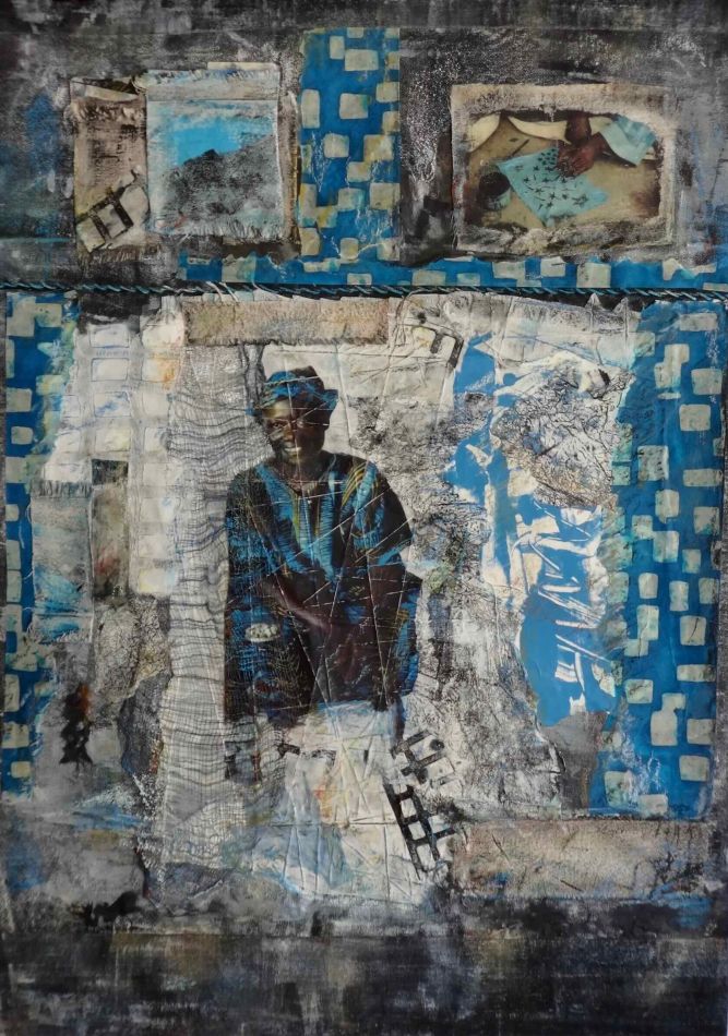 Gambian Lady Dollmaker Photo transfer onto Mixed Media Art