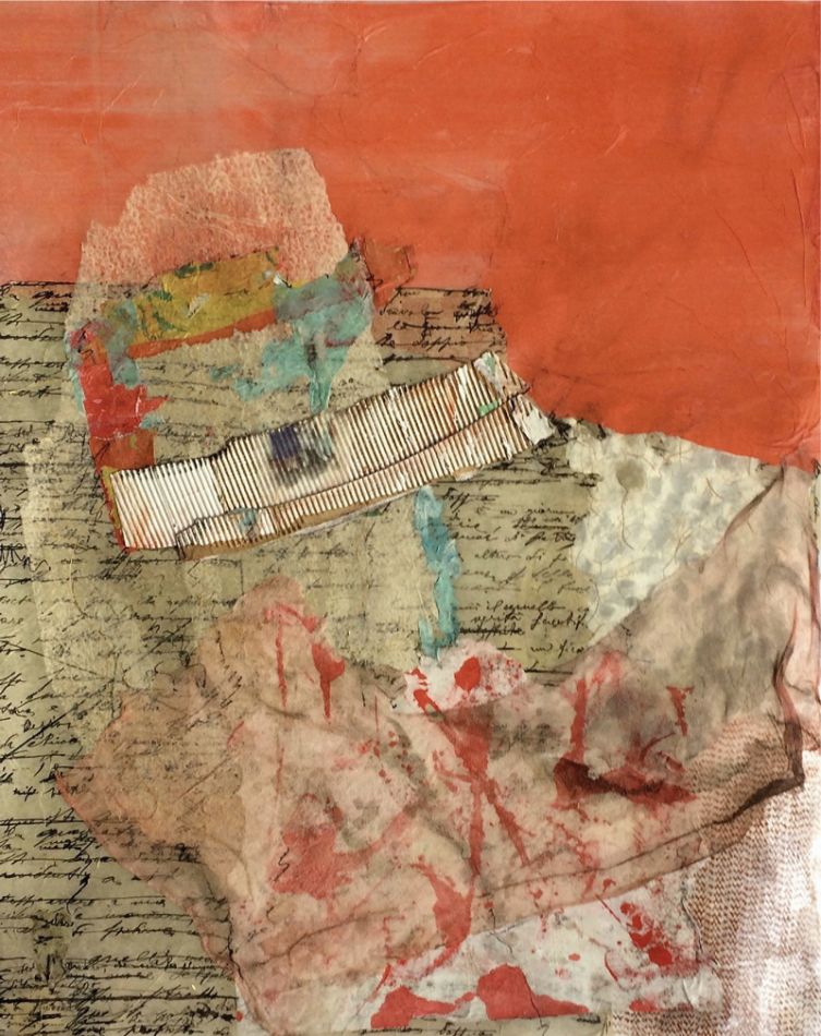 Laminated mixed media on Mylar: voile, coffee wrap, dyed silk, Asian papers, tissue.